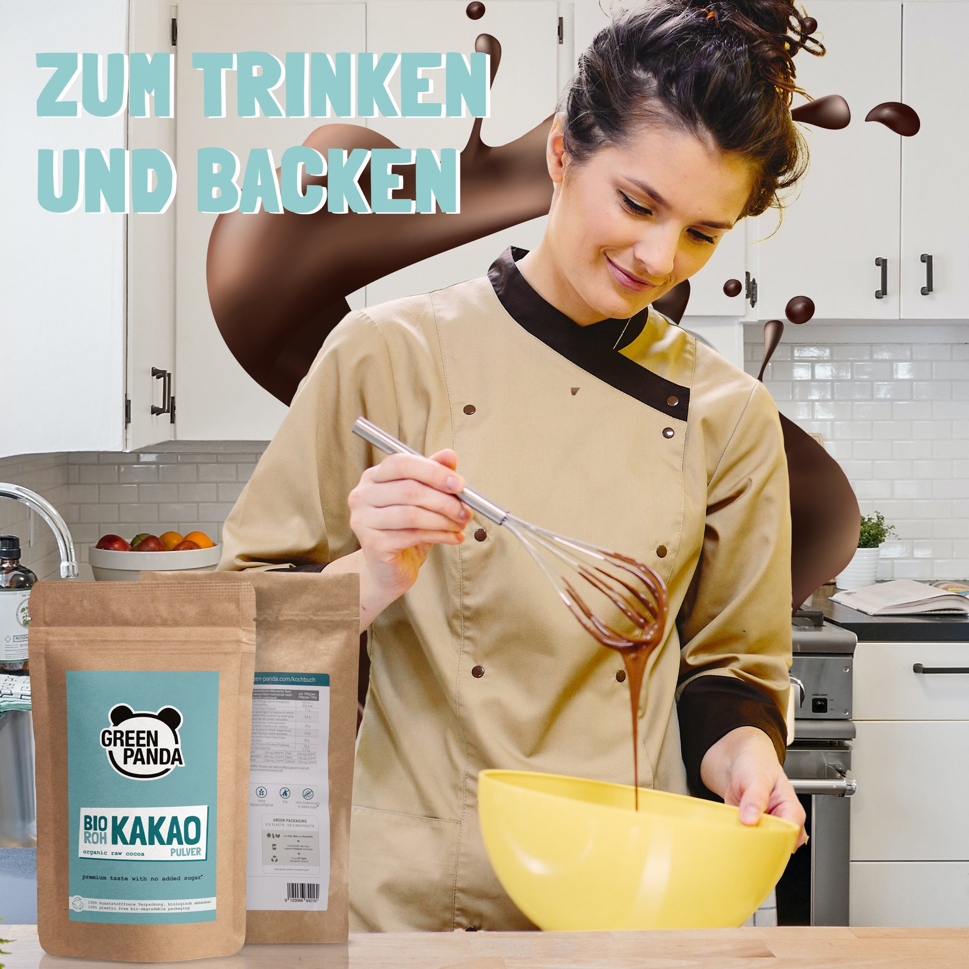 Unser Bio Rohkakao wird aus hochwertigen Premium Kakaobohnen hergestellt. Pures Kakaopulver, ohne Zuckerzusatz und 100% natürlicher, schokoladiger Geschmack.